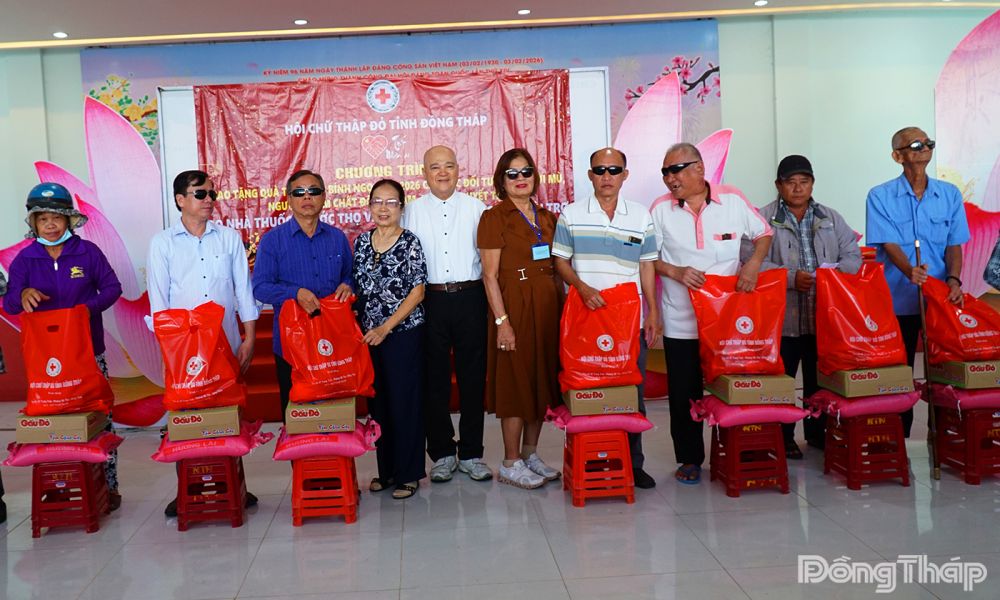 (DTO) On the morning of February 13, the Dong Thap Red Cross Society, in coordination with the Vietnam Fatherland Front Committee of Dong Thap Province and relevant units, organized a program to present Lunar New Year gifts to the blind, Agent Orange victims, and people with disabilities across the province.