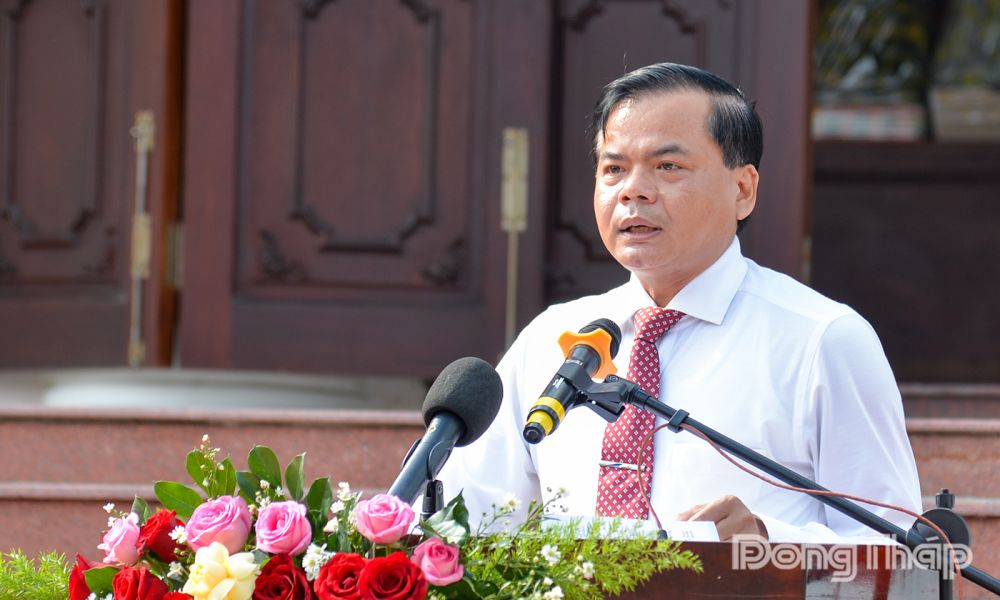Attending the ceremony were Ms. Chau Thi My Phuong, Deputy Secretary of the Provincial Party Committee and Chairwoman of the Dong Thap People’s Council; former leaders of the Cai Lay District Party Committee, Cai Lay Town Party Committee, Tan Phuoc District Party Committee; and relatives of Comrade Phan Van Khoe.