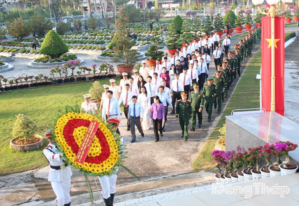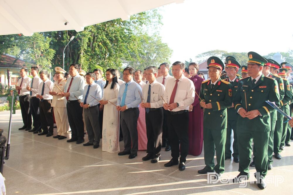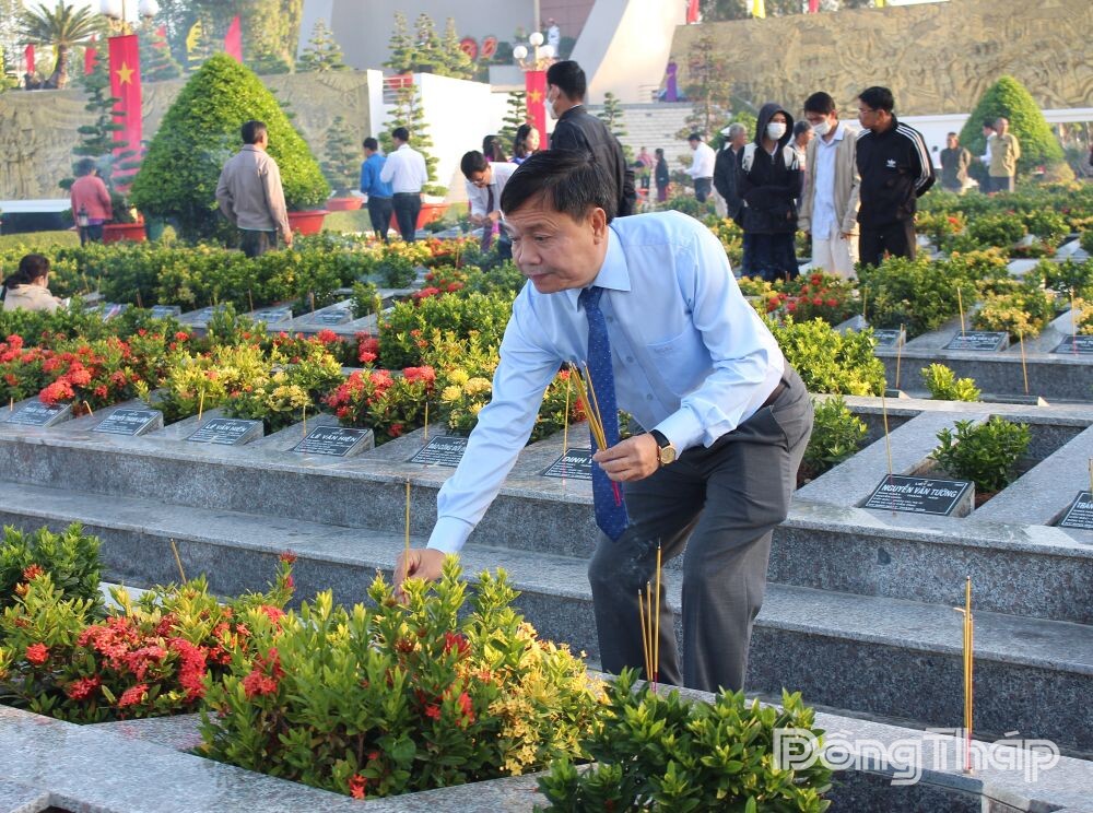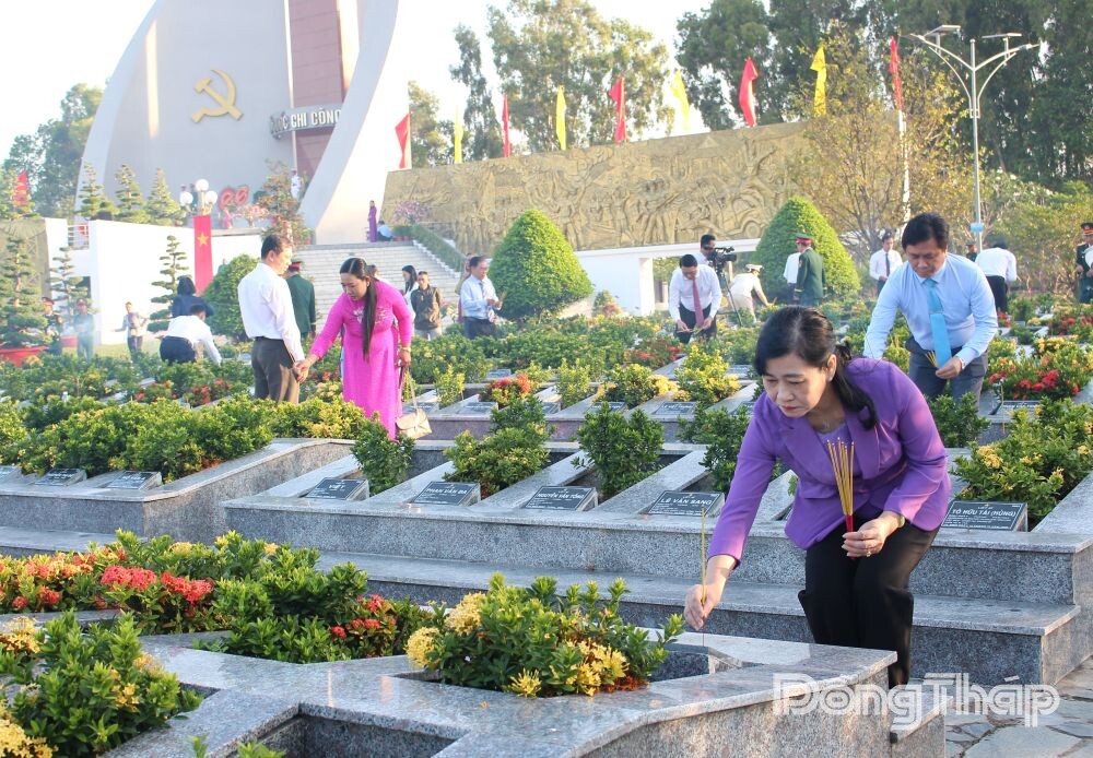 The provincial leadership delegation pays tribute at the Dong Thap Provincial Martyrs’ Cemetery on the occasion of the 96th anniversary of the founding of the Communist Party of Vietnam (1930-2026) and Lunar New Year 2026.The provincial leadership delegation pays tribute at the Dong Thap Provincial Martyrs’ Cemetery on the occasion of the 96th anniversary of the founding of the Communist Party of Vietnam (1930-2026) and Lunar New Year 2026.The provincial leadership delegation pays tribute at the Dong Thap Provincial Martyrs’ Cemetery on the occasion of the 96th anniversary of the founding of the Communist Party of Vietnam (1930-2026) and Lunar New Year 2026.The delegation observed a minute of silence to honor the great sacrifices of predecessors and heroic martyrs who laid down their lives for the nation’s independence, freedom, and the people’s happiness.Mr. Phan Van Thang, Permanent Deputy Secretary of the Provincial Party Committee and Chairman of the Vietnam Fatherland Front Committee of Dong Thap Province, offers incense to heroic martyrs at the cemetery.Ms. Chau Thi My Phuong, Deputy Secretary of the Provincial Party Committee and Chairwoman of the Provincial People’s Council, offers incense to heroic martyrs.Mr. Pham Thanh Ngai, Deputy Secretary of the Provincial Party Committee and Chairman of the Provincial People’s Committee, offers incense to heroic martyrs.Delegates offer incense to heroic martyrs.