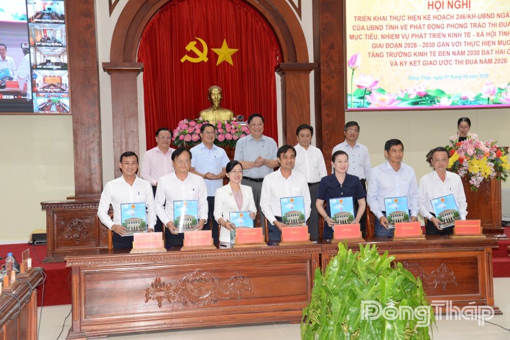 (DTO) On the afternoon of April 7, the Dong Thap Provincial People’s Committee held a conference to implement Plan 246/KH-UBND (dated March 8, 2026) on launching an emulation movement to fulfill the province’s socio-economic development goals for 2026-2030, tied to achieving double-digit economic growth by 2030, and to sign the 2026 emulation agreement.