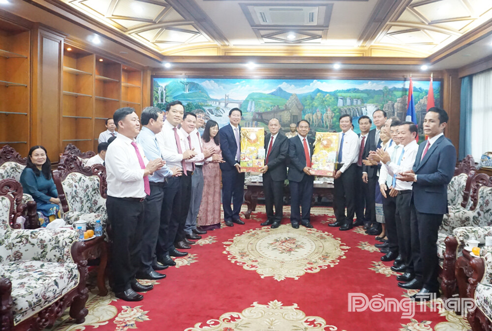 In response, Mr. Somboun Heuangvongsa expressed his pleasure and honor in welcoming the Dong Thap delegation on the occasion of the traditional New Year.