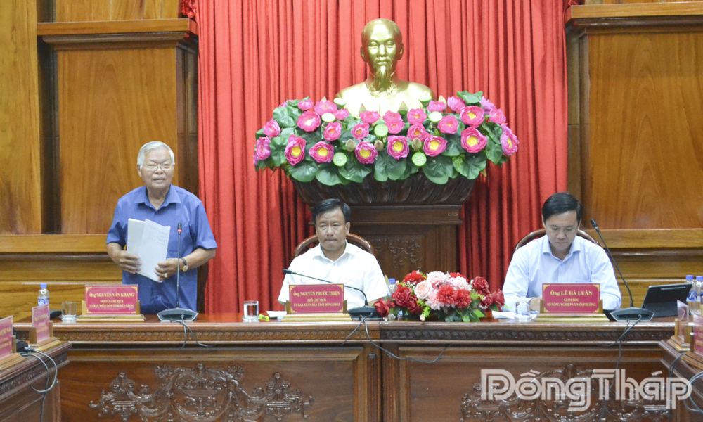 The workshop was chaired by Dr. Nguyen Van Khang, former Deputy Secretary of the Tien Giang Provincial Party Committee and former Chairman of the Provincial People’s Committee; Dr. Nguyen Phuoc Thien, Vice Chairman of the Dong Thap Provincial People’s Committee; and Le Ha Luan, Director of the Department of Agriculture and Environment. It also drew representatives from research institutes, the Hydrometeorological Station, former provincial leaders, experts, and scientists.