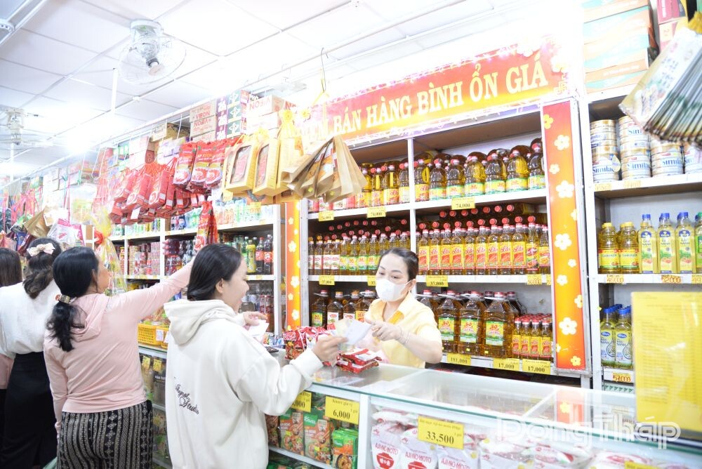 The team focused on inspecting the implementation of Plan No. 68/KH-UBND dated January 21, 2026, issued by the Dong Thap Provincial People’s Committee on stockpiling and supplying essential goods for the Lunar New Year; the display of banners identifying stockpiled goods; price registration and adherence to registered prices; and the quantity and quality of goods participating in the stockpiling program.