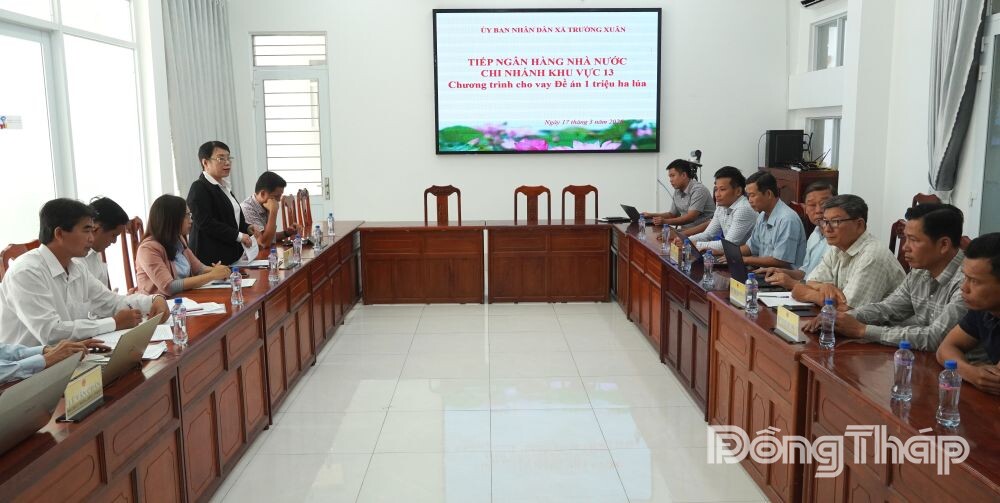 (DTO) On the morning of March 17, the Dong Thap Department of Agriculture and Environment, in coordination with the State Bank of Vietnam (Regional Branch 13), held a working session to survey and evaluate the implementation of the lending program for the "Sustainable Development of One Million Hectares of High-Quality, Low-Emission Rice in the Mekong Delta" project (the Project) in Truong Xuan and Doc Binh Kieu communes.