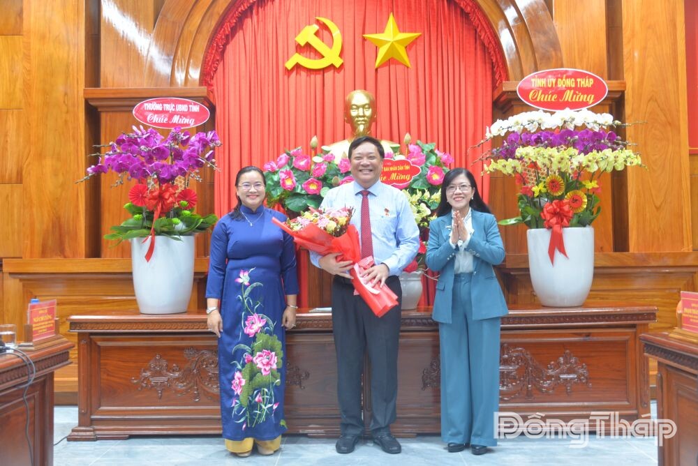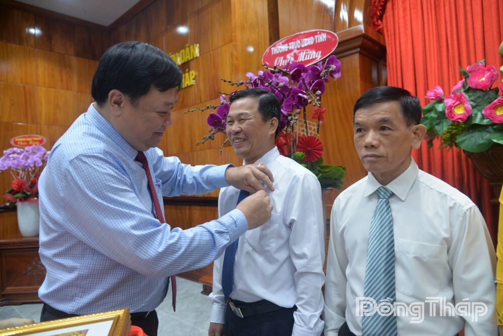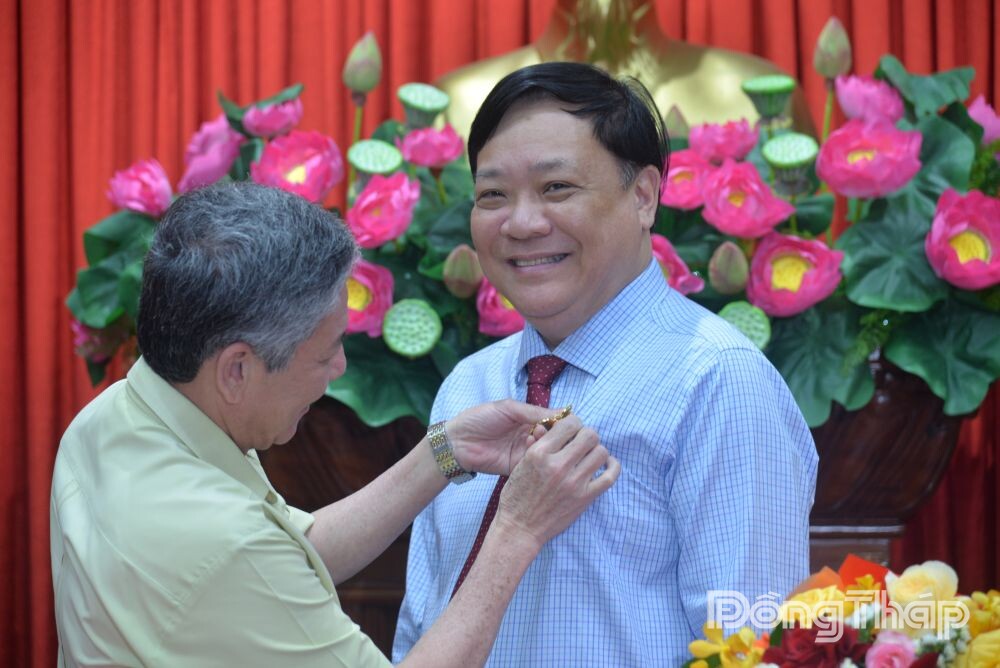 Attending the Party Badge presentation ceremony were Mr. Ngo Chi Cuong, Member of the Party Central Committee, Provincial Party Secretary, and Head of the National Assembly Delegation of Dong Thap Province; Mr. Pham Thanh Ngai, Deputy Secretary of the Provincial Party Committee, Chairman of the Provincial People’s Committee, and Secretary of the Party Committee of the Provincial People’s Committee; Mr. Tran Van Dung, Member of the Standing Committee of the Provincial Party Committee, Standing Deputy Secretary of the Party Committee, and Standing Vice Chairman of the Provincial People’s Committee, among others.
