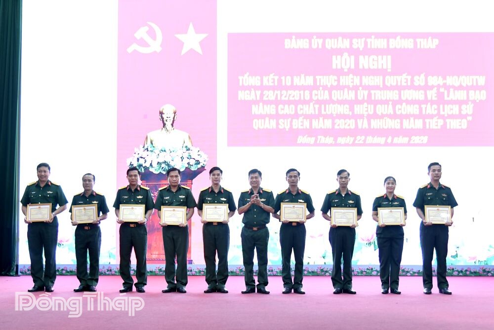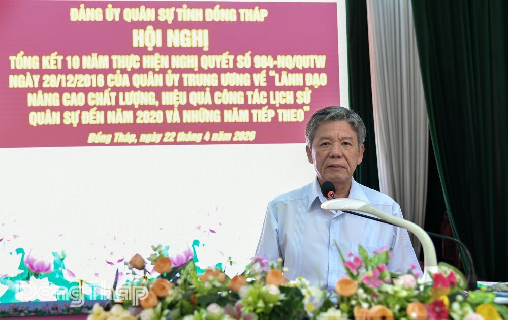 (DTO) On April 22, the Party Committee of the Dong Thap Provincial Military Command held a conference reviewing 10 years (2016-2026) of implementing Resolution No. 984 of the Central Military Commission and the Military Region Party Committee on improving the quality and effectiveness of military history work.