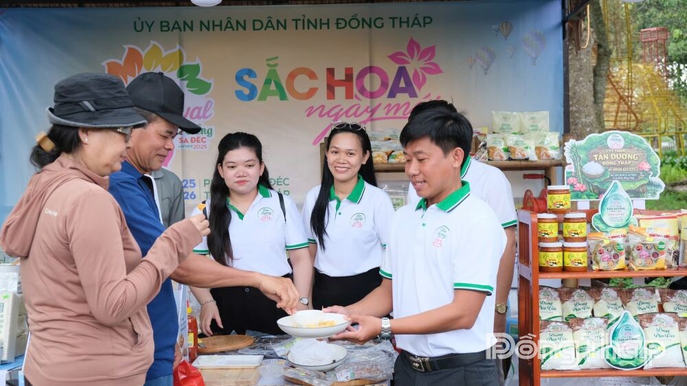 A bird’s-eye view of the Vietnam Map made from 1,000 flower varieties - a symbol of unity and the pride of Sa Dec Flower Village.A representative of Dong Thap Province receives the Vietnam Record Certificate for the installation “Vietnam Map created from the largest number of flower and ornamental plant varieties” during the festival’s opening ceremony.Visitors excitedly take photos at the flower display “Sa Dec Heart,” featuring the national flag, a must-stop photo spot of the festival.A display corner of ancient bonsai trees draws large crowds of admirers.Elaborately arranged carpets of chrysanthemums and periwinkles create a mesmerizing artistic scene at Sa Dec Square.Under the golden sunlight, the entrance arch of the 2nd Sa Dec Flower & Ornamental Plant Festival becomes a welcoming stop for families and young visitors.The display area of yellow apricot blossoms and artistic ornamental trees captivates visitors with the craftsmanship of local artisans.At the cultural space, visitors have the chance to learn about Long Khanh scarf weaving and other traditional crafts of Dong Thap, as well as experience unique handmade processes.OCOP stalls stay lively throughout the day as visitors sample and buy signature specialties of the Pink Lotus Land.
