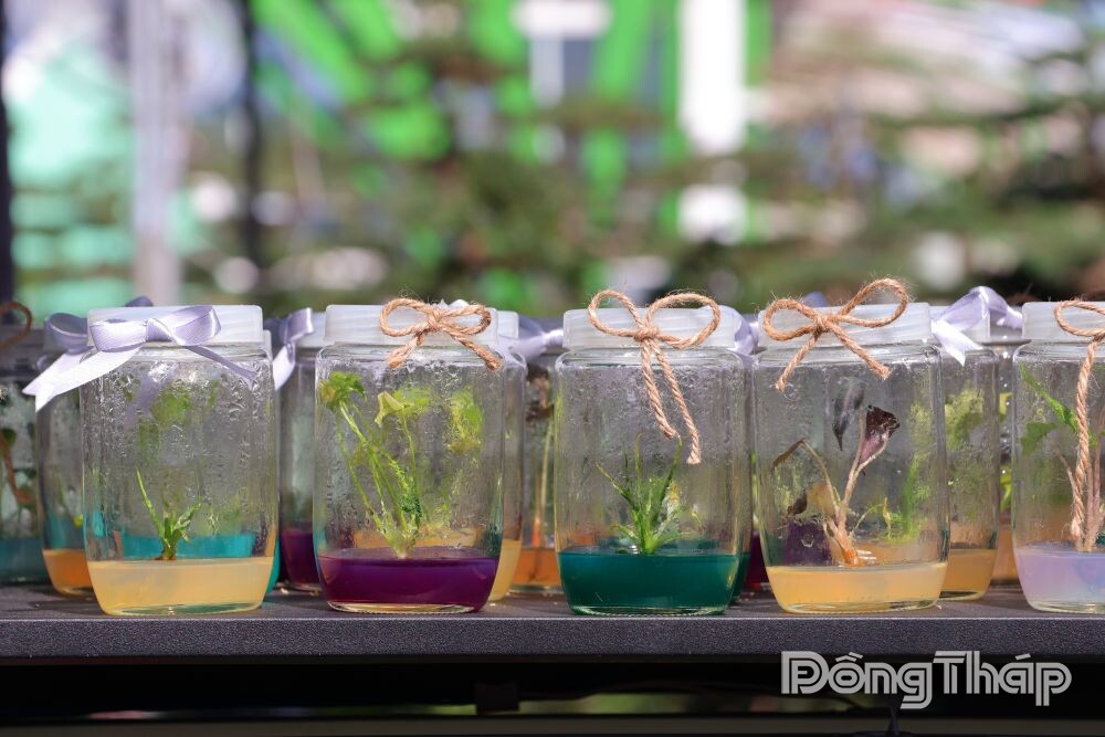 At the stall of Ut Hiep Seedling Farm (Khanh Hoa Hamlet, Sa Dec Ward), many visitors stopped in curiosity as they observed tender green plantlets cultivated inside glass jars. Owner Le Thanh Tuyen explained: “People walking by can’t help stopping as they find it so fascinating. We display both the seedlings in test tubes and the mature plants so visitors can compare. Tissue culture ensures uniform seedlings, disease-free growth, and exceptionally strong vitality.”