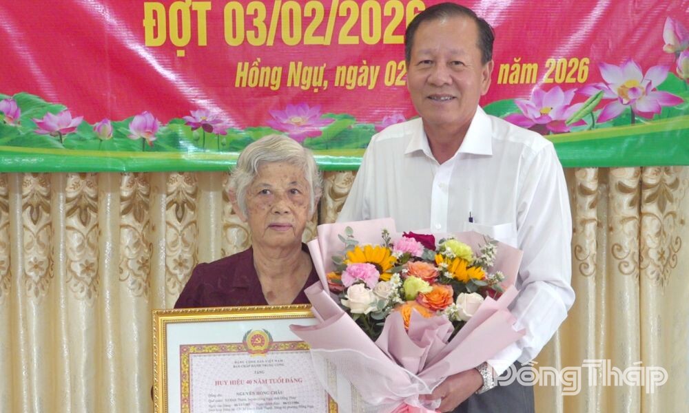 (DTO) In the atmosphere of the days leading up to Spring Binh Ngo 2026, together with the whole country commemorating the 96th anniversary of the founding of the Communist Party of Viet Nam (February 3, 1930 – February 3, 2026), Party committees at all levels in Dong Thap Province solemnly held ceremonies to present Party Badges to Party members.