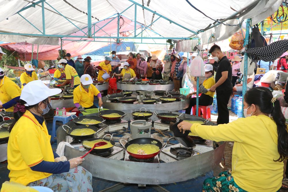 The kindness of the Dong Thap people towards pilgrims was also vividly expressed through free food and drinks. Numerous volunteer groups and individuals from within and outside the province cooked thousands of vegetarian meals, "Banh Xeo" (Vietnamese sizzling pancake) and provided refreshing drinks throughout the festival.