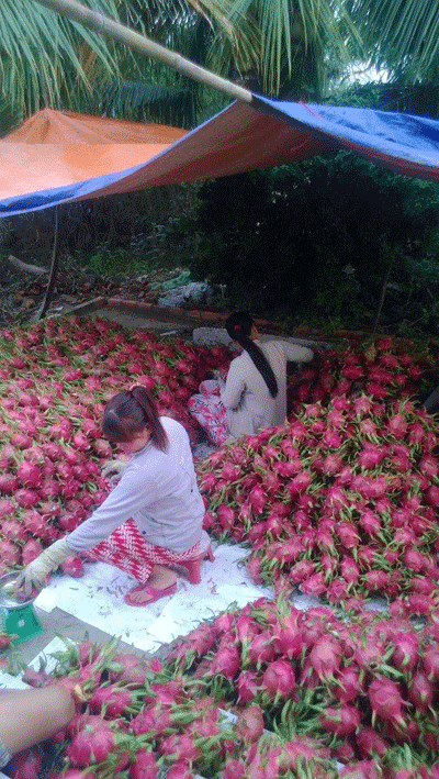 | Thương lái thu mua Thanh Long của vườn nhà ông Yêm. |