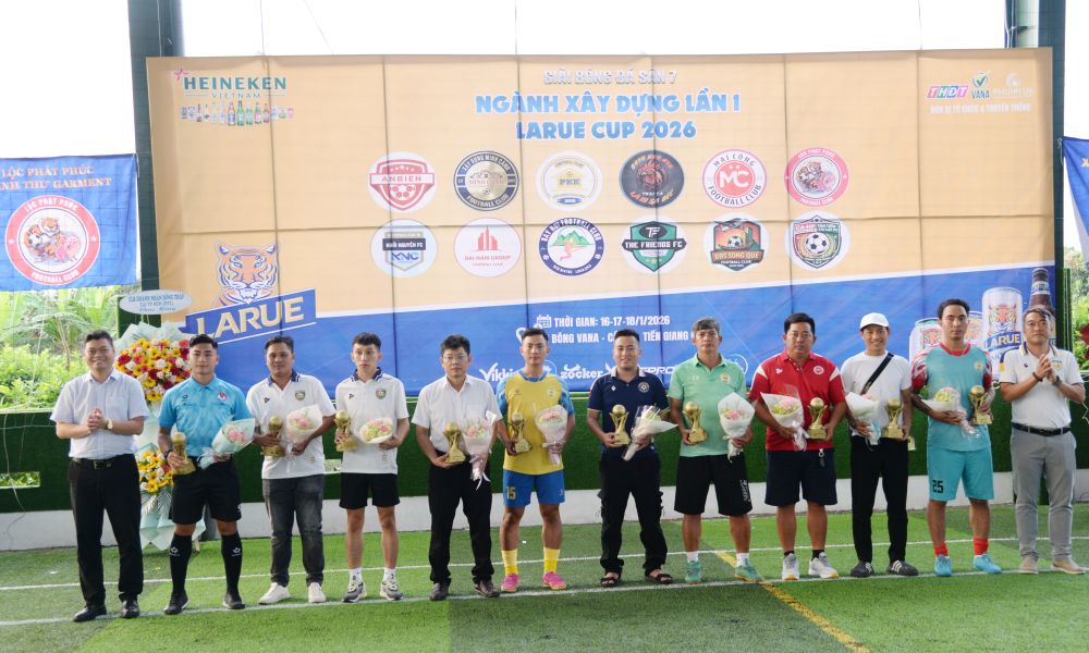 (ĐTO) Ngày 16-1, tại Khu Thể thao Liên hợp VANA (xã An Hữu), Giải bóng đá S7 ngành Xây dựng lần 1 - Larue Cup 2026 đã chính thức khai mạc, đánh dấu sự kiện thể thao chào mừng năm mới đầu tiên được tổ chức tại tỉnh Đồng Tháp.