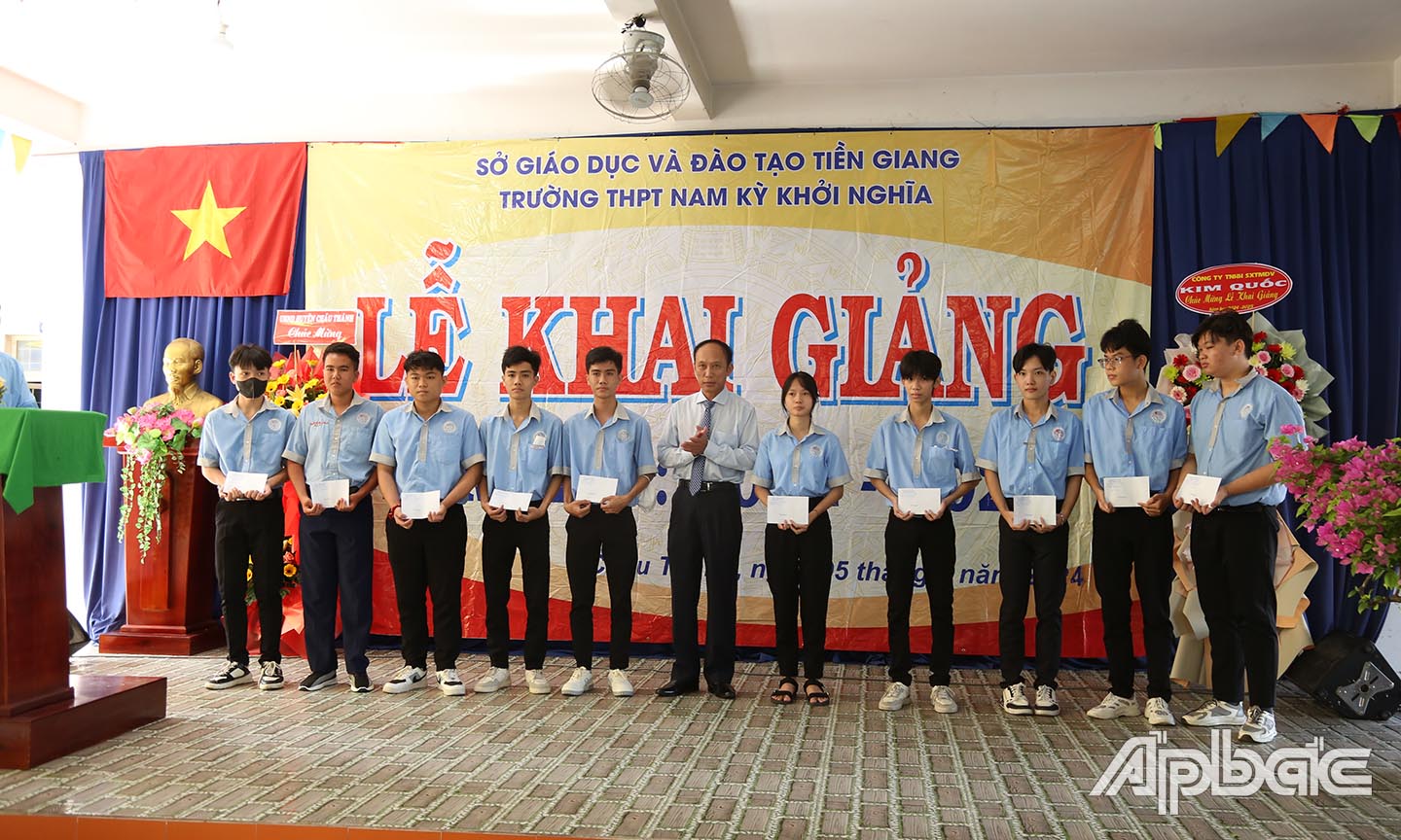 Nhân dịp khai giảng, Đại tá Nguyễn Văn Nhựt đã trao 20 suất học bổng của Tỉnh ủy Tiền Giang và nhiều phần quà cho các học sinh vượt khó, học giỏi.