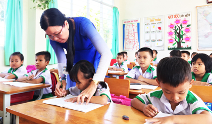 Chính vì thế, ngoài việc dạy chữ mình phải dạy cho các em thêm kỹ năng sống. Các em là học sinh cấp 1 còn rất nhỏ, vì vậy mình phải uốn nắn, dạy cho các em những gì tốt đẹp nhất để góp phần hình thành nhân cách cho các em về sau này. Có nhiều gia đình khó khăn chỉ lo mưu sinh, không có điều kiện cho trẻ học mẫu giáo hay kèm kẹp bé viết chữ, nhiều em như trang giấy trắng, phải cầm tay, dạy các em từng nét chữ đầu đời. Muốn làm được điều đó đòi hỏi người giáo viên phải kiên trì, nhẫn nại và phải yêu nghề”.