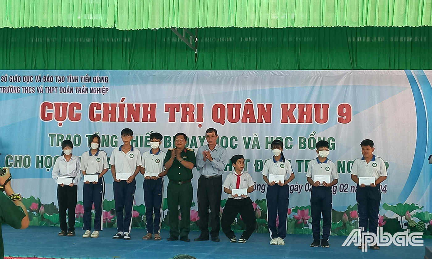 (ABO) Ngày 2-2, Trường THCS-THPT Đoàn Trần Nghiệp (xã Thành Công, huyện Gò Công Tây, tỉnh Tiền Giang) tổ chức Lễ trao tặng thiết bị giáo dục và phát học bổng cho các em học sinh hiếu học của trường.