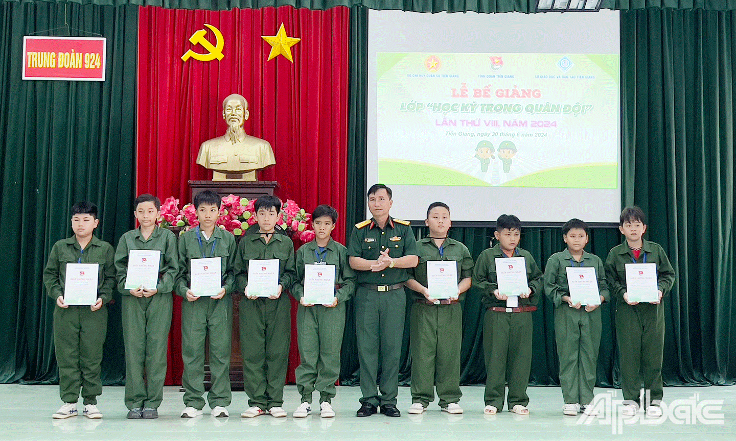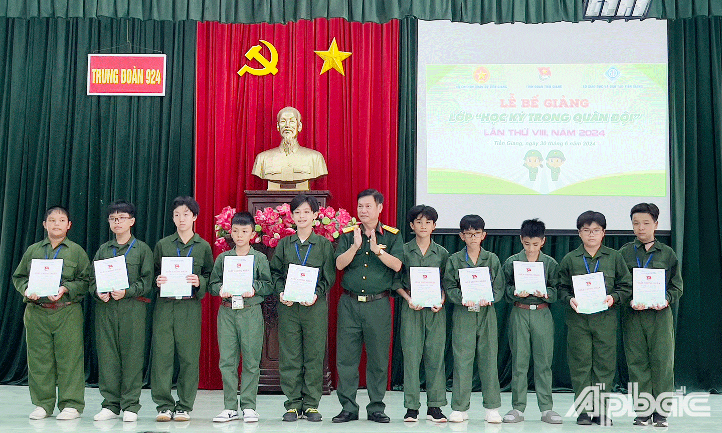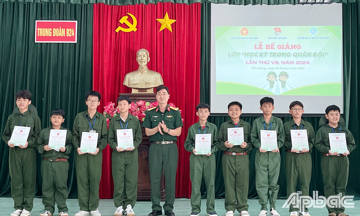(ABO) Ngày 30-6, tại Trung đoàn bộ binh 924 - Bộ Chỉ huy Quân sự tỉnh, Ban Thường vụ Tỉnh đoàn phối hợp với Bộ Chỉ huy Quân sự tỉnh, Sở Giáo dục và Đào tạo tỉnh Tiền Giang tổ chức bế giảng lớp “Học kỳ trong Quân đội” lần VIII năm 2024.