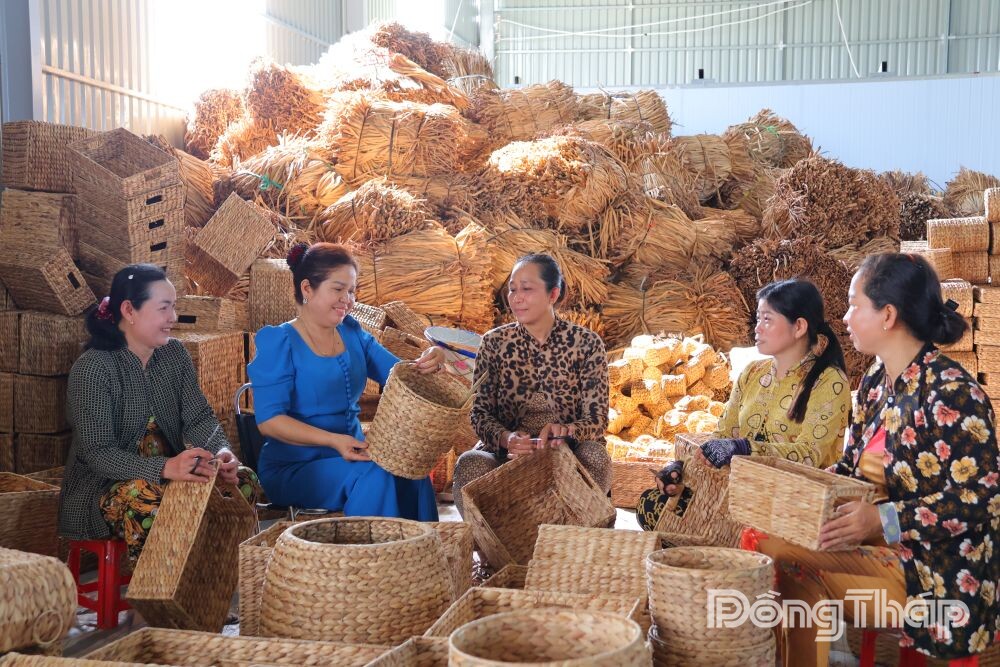 Song song với lĩnh vực nông nghiệp, nghề đan lục bình tại xã Mỹ Thọ cũng đang mở ra hướng đi mới trong tạo việc làm và nâng cao thu nhập cho phụ nữ nông thôn.