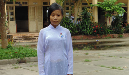 Trương Hoài Ngọc học lớp 12A3, Trường THPT Lê Văn Phẩm (TX. Cai Lậy) bị bệnh ung khi máu khi mới lên 3 tuổi. Gia đình em không đất canh tác, mẹ làm công nhân ở Khu công nghiệp Tân Hương, còn cha làm thuê ở xóm, bữa có bữa không, hoàn cảnh gia đình khó khăn nhưng vẫn cố gắng chữa bệnh và lo cho em được đến trường.
