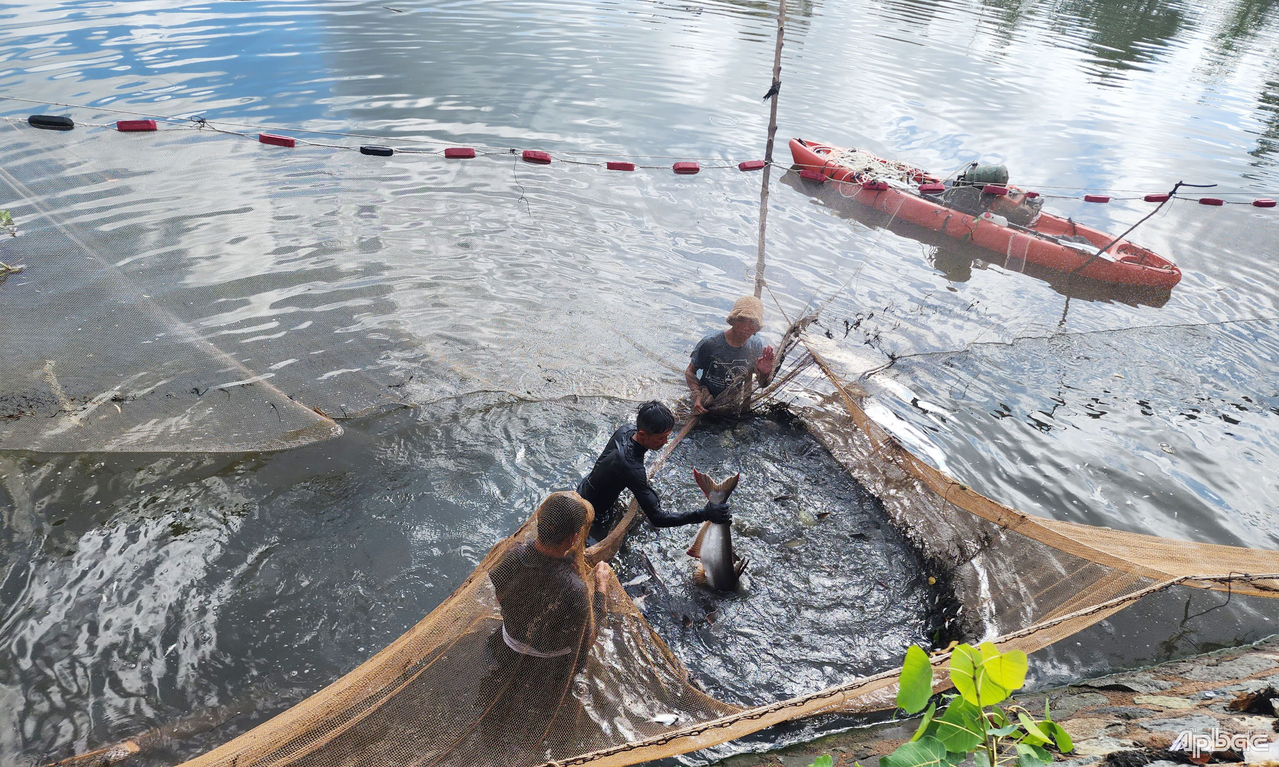 | Bủa lưới thu hoạch cá. |