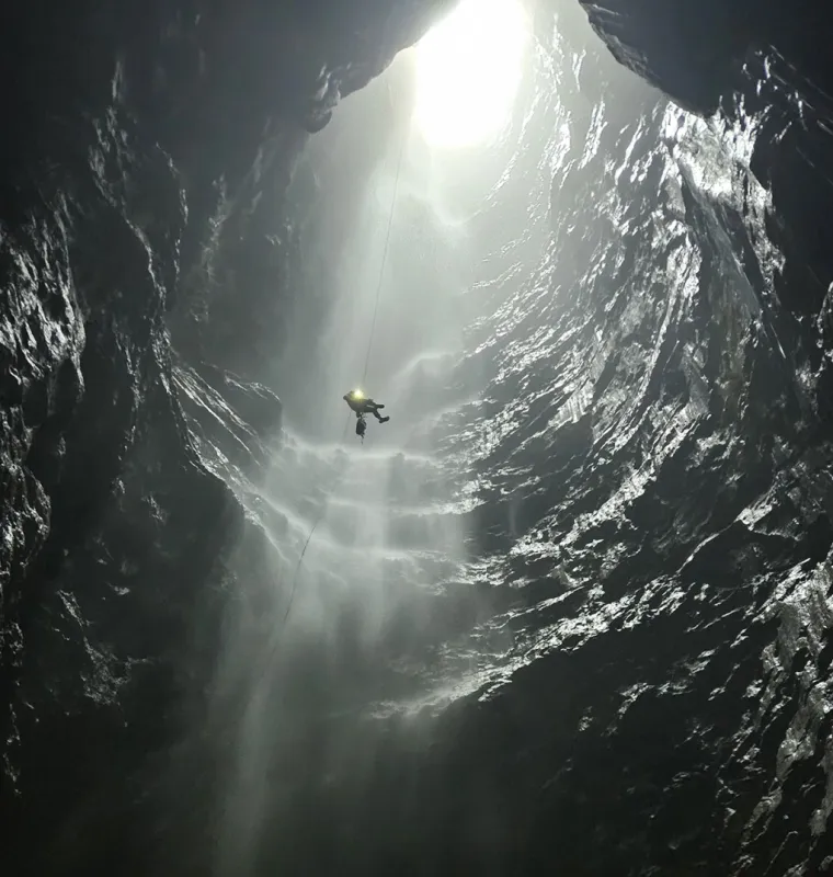 Hành trình tìm ra hang hố sụt với thác nước cao 350 m