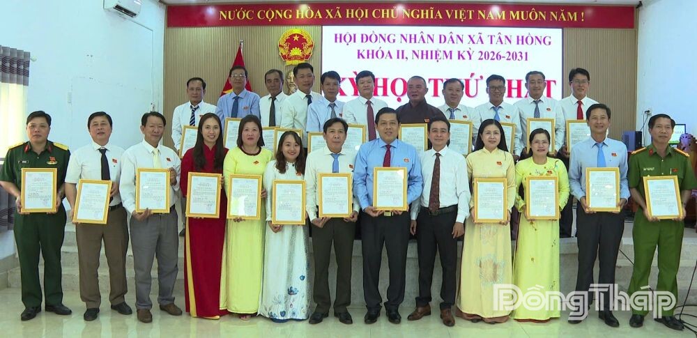 Tại kỳ họp, với tinh thần dân chủ, khách quan, trách nhiệm, HĐND xã Tân Hồng tiến hành bầu các chức danh chủ chốt của HĐND, UBND nhiệm kỳ 2026 - 2031. Trong đó, gồm: Chủ tịch HĐND xã, Phó Chủ tịch HĐND xã, Trưởng Ban Kinh tế - Ngân sách HĐND xã, Trưởng Ban Văn hóa - Xã hội HĐND xã; đồng thời, bầu Chủ tịch UBND xã, 2 Phó Chủ tịch UBND xã và các Ủy viên UBND xã.