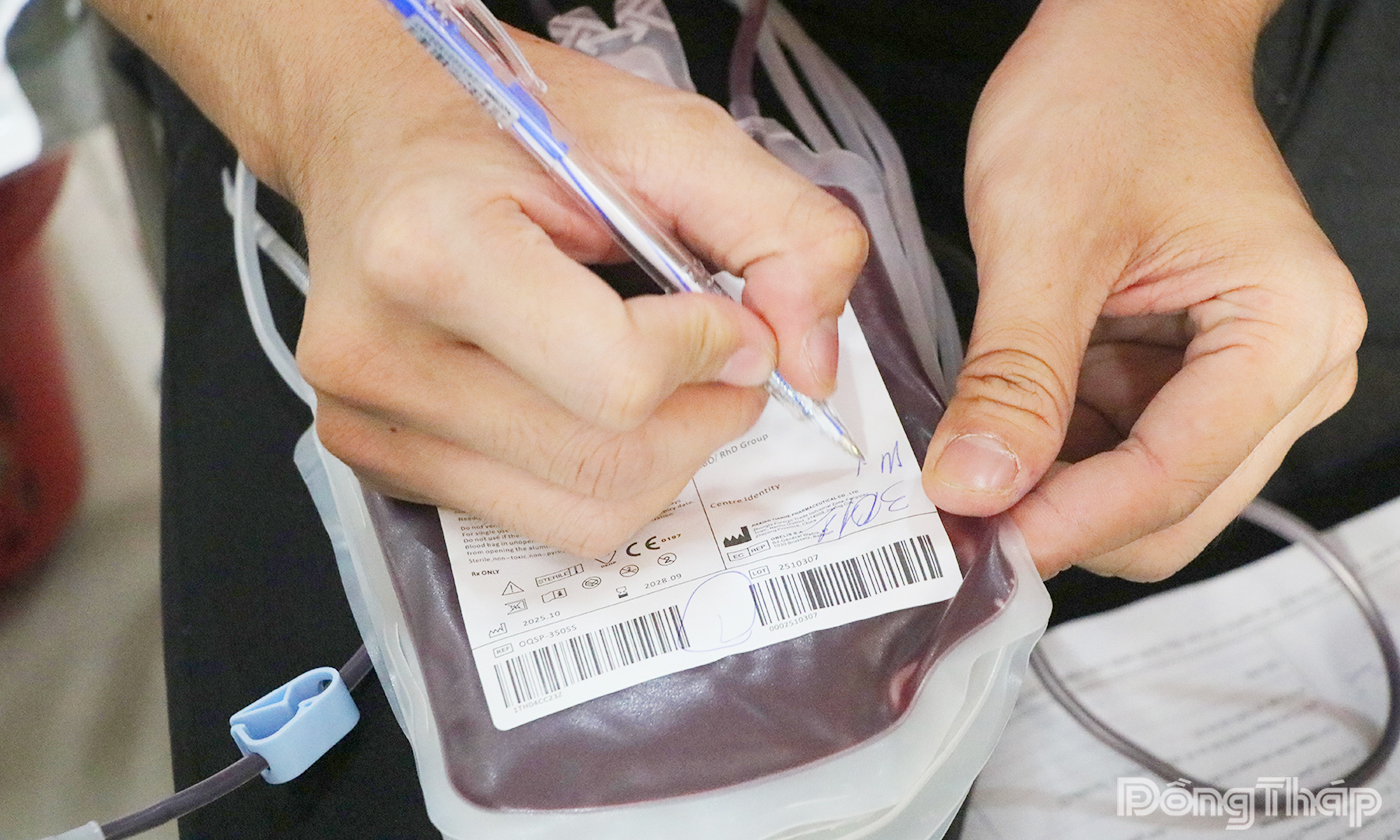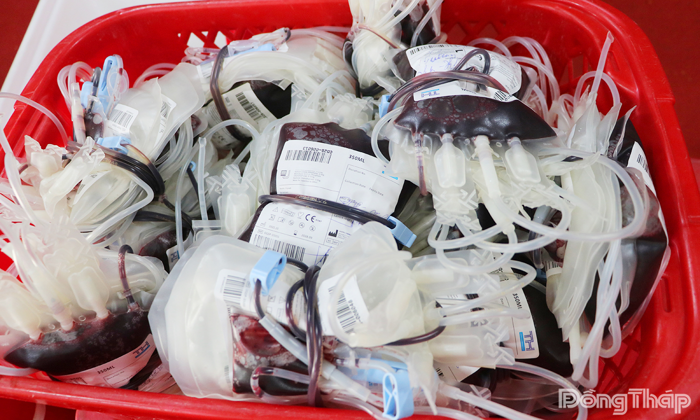 Việc lấy máu được nhân viên Bệnh viện Huyết học và Truyền máu Cần Thơ thực hiện cẩn thận, đúng quy trình, đảm bảo an toàn sức khoẻ cho người hiến máu.Mỗi túi máu hiến tặng không chỉ chứa từ 250 - 350ml máu mà còn thể hiện tấm lòng, nghĩa tình của cán bộ, công chức, viên chức, người dân dành cho người bệnh.Nhân viên Bệnh viện Huyết học và Truyền máu Cần Thơ cẩn thận ghi thông tin lên từng túi máu.Những túi máu được hiến tặng góp phần bổ sung nguồn máu phục vụ cho công tác cấp cứu và điều trị cho người đang cần truyền máu.Những túi máu được Bệnh viện Huyết học và Truyền máu Cần Thơ bảo quản cẩn thận để phục vụ cho công tác cứu chữa cho người bệnh đang cần máu.