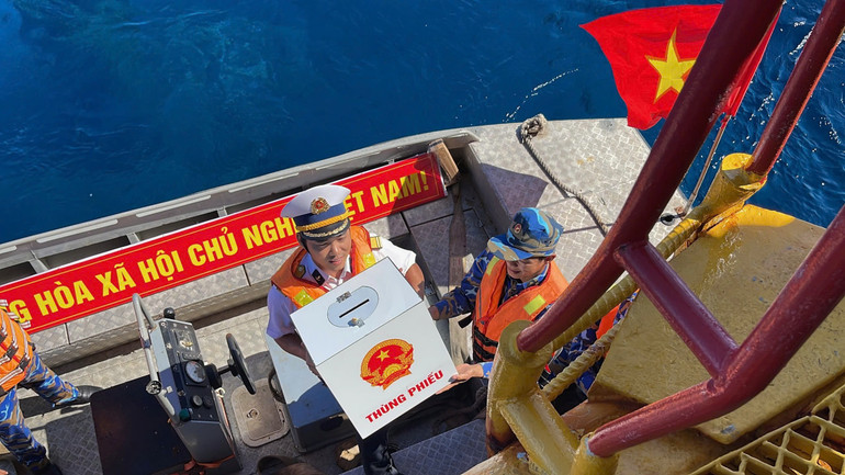 Theo quy trình, Tổ bầu cử từ tàu TS-04 mang hòm phiếu và các lá phiếu cử tri để lên nhà giàn. Các bước được tiến hành đúng trình tự, đúng quy định.
