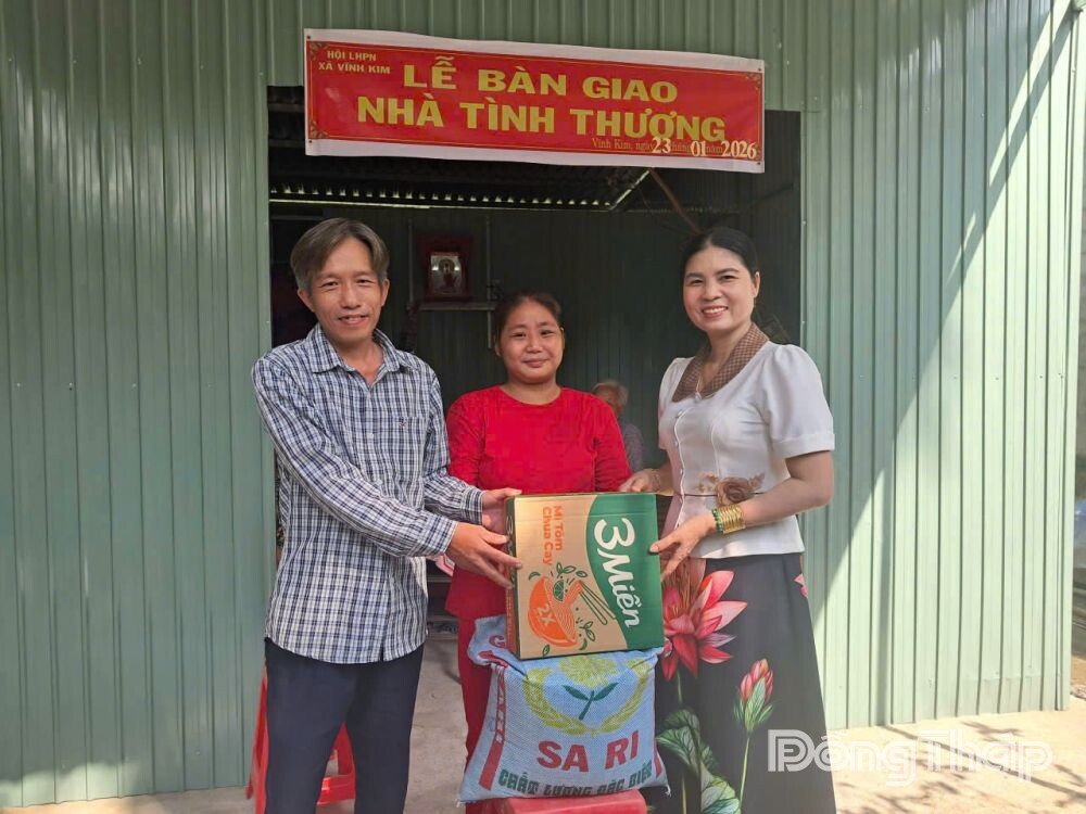 Cùng với đó, Hội LHPN xã Vĩnh Kim tổ chức lễ bàn giao căn nhà tình thương cho chị Lê Thị Minh Thư, hội viên phụ nữ ấp Phú Thuận, với kinh phí 50 triệu đồng do Hội vận động họ đạo Hòa Hảo hỗ trợ. Việc trao tặng mái ấm nghĩa tình không chỉ giúp hội viên có nơi ở ổn định, mà còn tiếp thêm động lực để chị an tâm lao động, vươn lên trong cuộc sống.