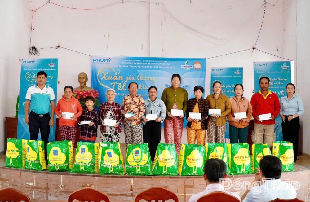 Tại xã An Long, Hội LHPN xã phối hợp với Tổng Công ty Phân bón và Hóa chất Dầu khí, Công ty Cổ phần Phân bón và Hóa chất Dầu khí Tây Nam Bộ tổ chức chương trình trao quà Tết Nguyên đán năm 2026 với chủ đề “Xuân yêu thương - Tết sẻ chia”.