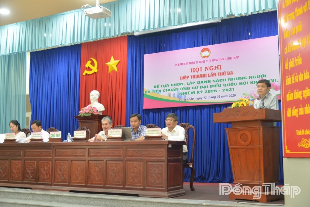 (ĐTO) Ngày 13-2, Ban Thường trực Ủy ban MTTQ Việt Nam tỉnh tổ chức Hội nghị hiệp thương lần thứ ba nhằm lựa chọn, lập danh sách chính thức những người đủ tiêu chuẩn ứng cử đại biểu Quốc hội khóa XVI và đại biểu HĐND tỉnh nhiệm kỳ 2026–2031. Đồng chí Phan Văn Thắng, Phó Bí thư Thường trực Tỉnh ủy, Chủ tịch Ủy ban MTTQ Việt Nam tỉnh chủ trì hội nghị.