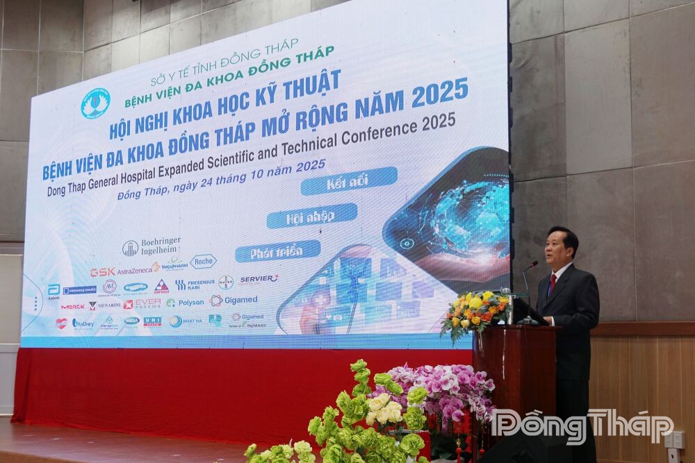 BS CKII Tạ Tùng Lâm – Giám đốc Bệnh viện Đa khoa Đồng Tháp, nhấn mạnh: khoa học kỹ thuật là hoạt động thường niên, trọng điểm, nhằm nâng cao năng lực khám chữa bệnh, bắt kịp tiến bộ y học và thúc đẩy việc nghiên cứu, đổi mới, ứng dụng của đội ngũ y bác sĩ. Chủ đề của hội nghị phản ánh định hướng chiến lược và khát vọng kết nối, chia sẻ kiến thức, kinh nghiệm giữa các chuyên gia, các thế hệ thầy thuốc, góp phần phát triển bền vững trong kỷ nguyên chuyển đổi số và đổi mới quản lý bệnh viện.