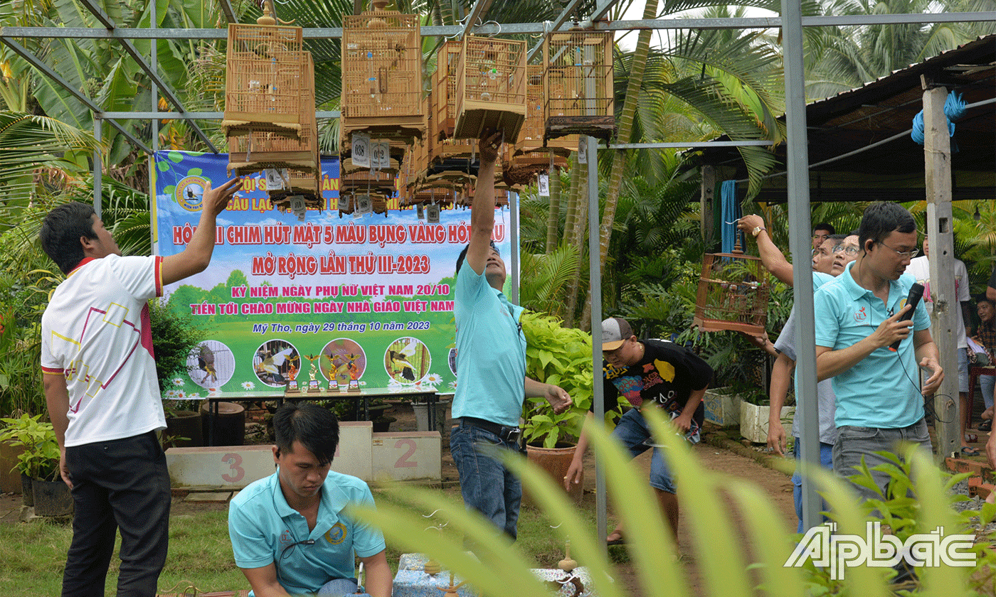 (ABO) Ngày 29-10, tại Cội Anh Thi, TP. Mỹ Tho, Hội Sinh vật cảnh tỉnh Tiền Giang, Câu lạc bộ (CLB) Chim hút mật miền Tây 63 tổ chức Hội thi Chim hút mật 5 màu bụng vàng hót đấu mở rộng lần thứ III năm 2023. Hội thi thu hút đông đảo các nghệ nhân từ các tỉnh, thành mang chim đến so tài.