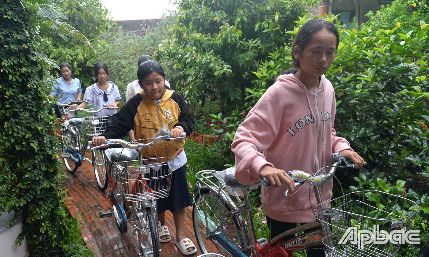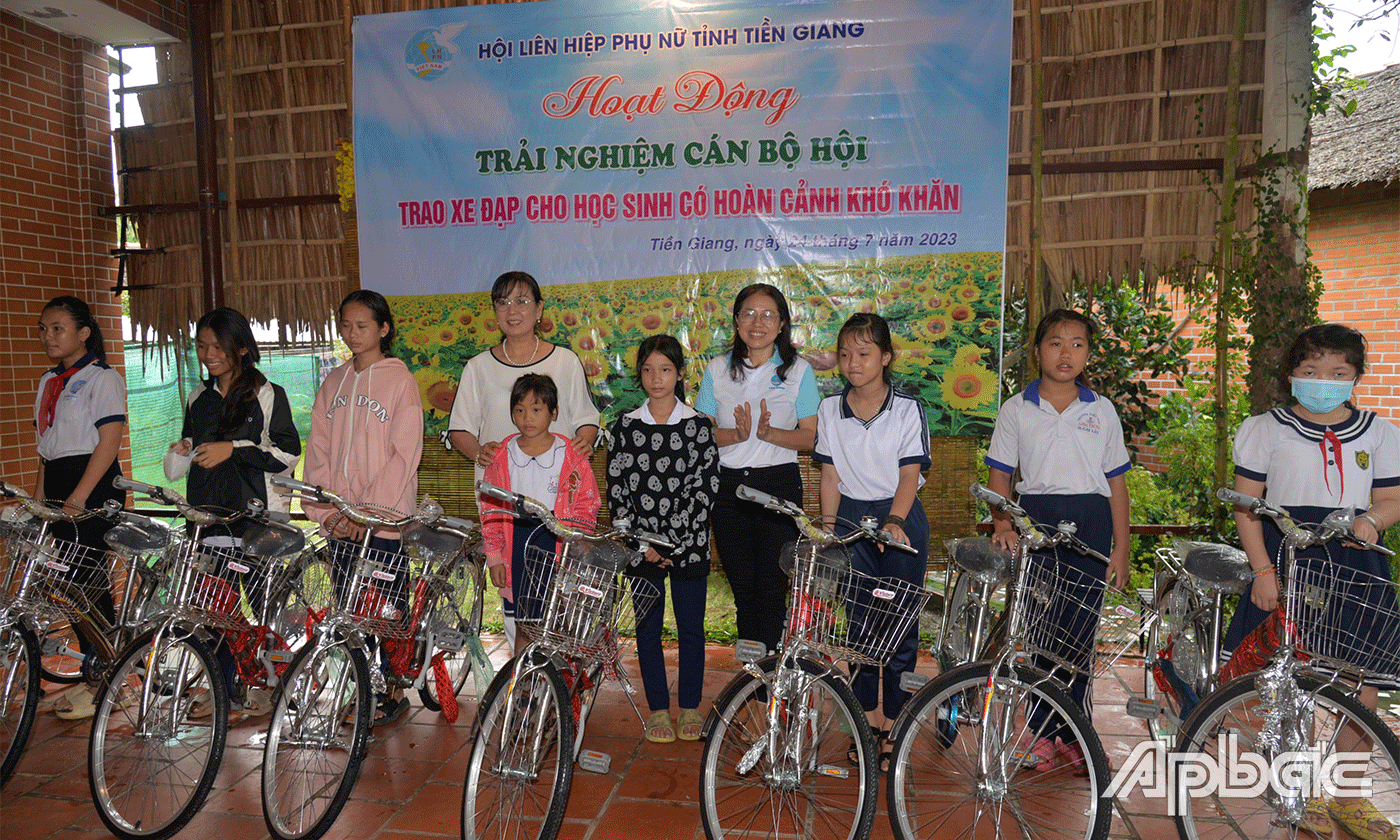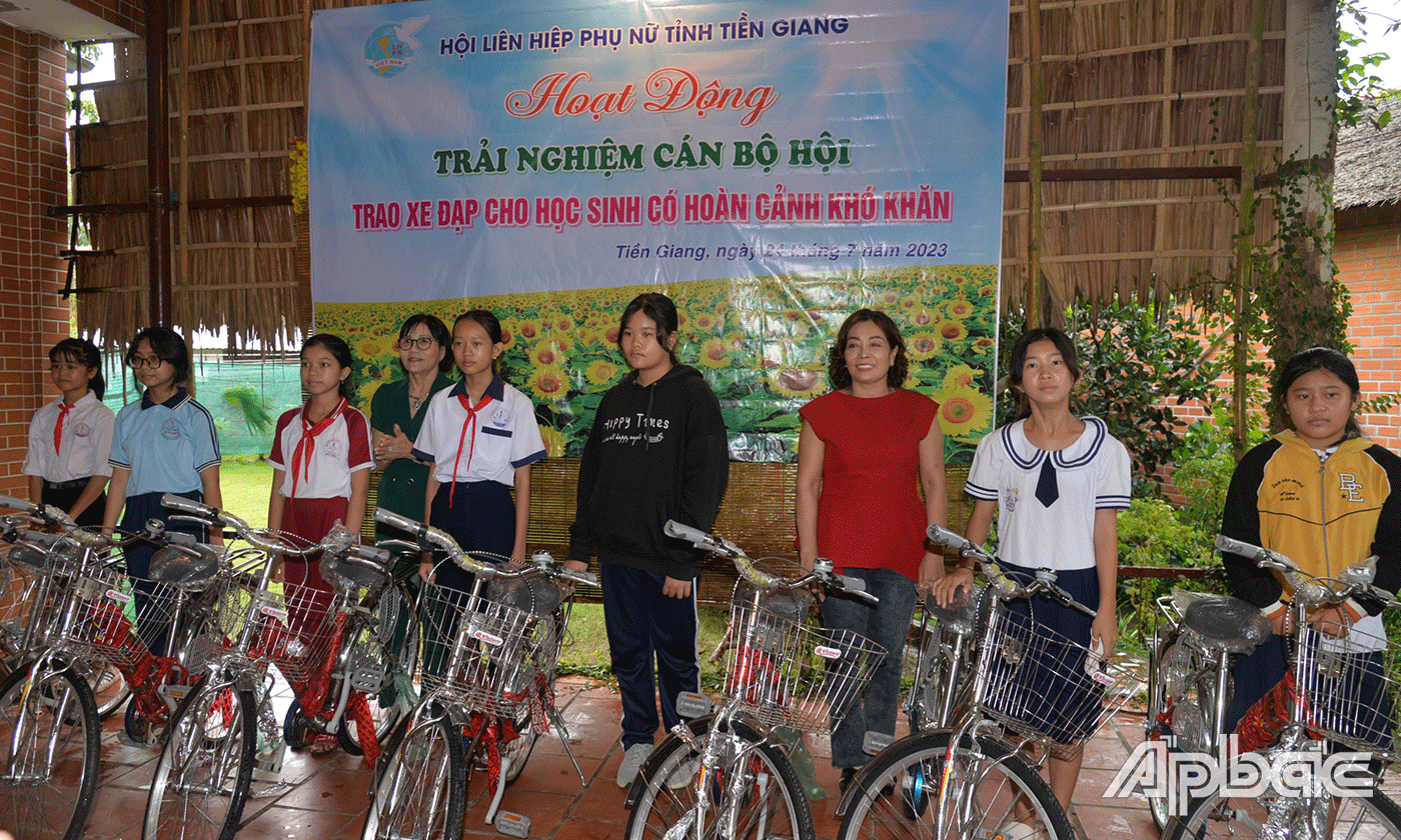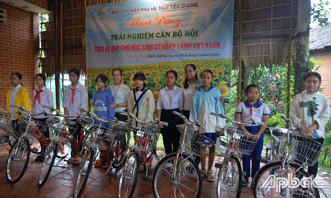 Dịp này, Chi hội Nữ doanh nhân tỉnh Tiền Giang và các nữ doanh nhân trên địa bàn tỉnh đã trao tặng 30 xe đạp cho các em học sinh khó khăn của huyện Cai lậy và Cái bè.