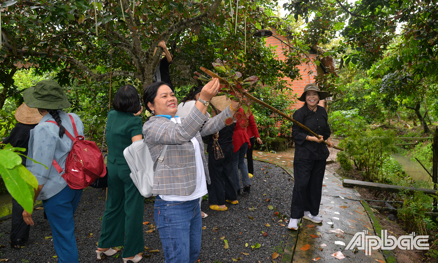 Cán bộ, hội viên, phụ nữ các huyện, thị, thành và các đơn vị trực thuộc đã có dịp tìm hiểu về mô hình du lịch sinh thái của chị Phan Thị Mỹ Sáu tại cù lao Tân Phong. Ý tưởng khởi nghiệp kinh doanh điểm du lịch sinh thái và homestay này đã đoạt giải Nhì tại Hội thi “Ý tưởng phụ nữ sáng tạo, khởi nghiệp” năm 2023. Điểm du lịch khoảng 5.000 m2, có khuôn viên sạch sẽ, thoáng mát, vườn trái cây và sân vườn rộng, thích hợp với việc vui chơi ngoài trời khi khách có nhu cầu và thưởng thức trái cây sạch ngay tại vườn. Ngoài ra, khách du lịch có thể tổ chức các buổi tiệc nhỏ như sinh nhật, tất niên, hay vui chơi và nghỉ dưỡng.