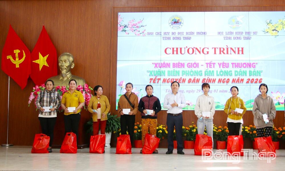 (ĐTO) Sáng 29-1, tại xã Tân Hồng, Ban Thường vụ Hội Liên hiệp Phụ nữ (LHPN) tỉnh phối hợp với Ban Chỉ huy Bộ đội Biên phòng (BĐBP) - Bộ Chỉ huy Quân sự tỉnh) tổ chức Chương trình “Xuân biên giới - Tết yêu thương”, “Xuân Biên phòng ấm lòng dân bản” nhân dịp Tết Nguyên đán Bính Ngọ năm 2026.