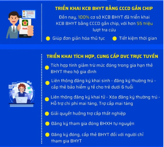 Đến nay, 100% cơ sở khám chữa bệnh BHYT đã kết nối, triển khai khám chữa bệnh BHYT bằng căn cước công dân gắn chip, với hơn 55 triệu lượt tra cứu.