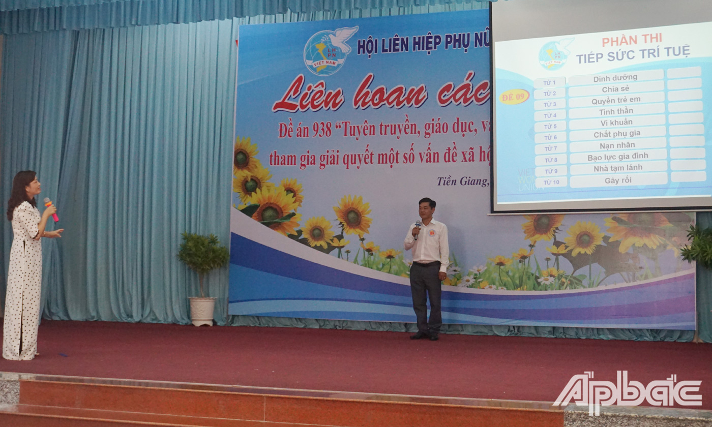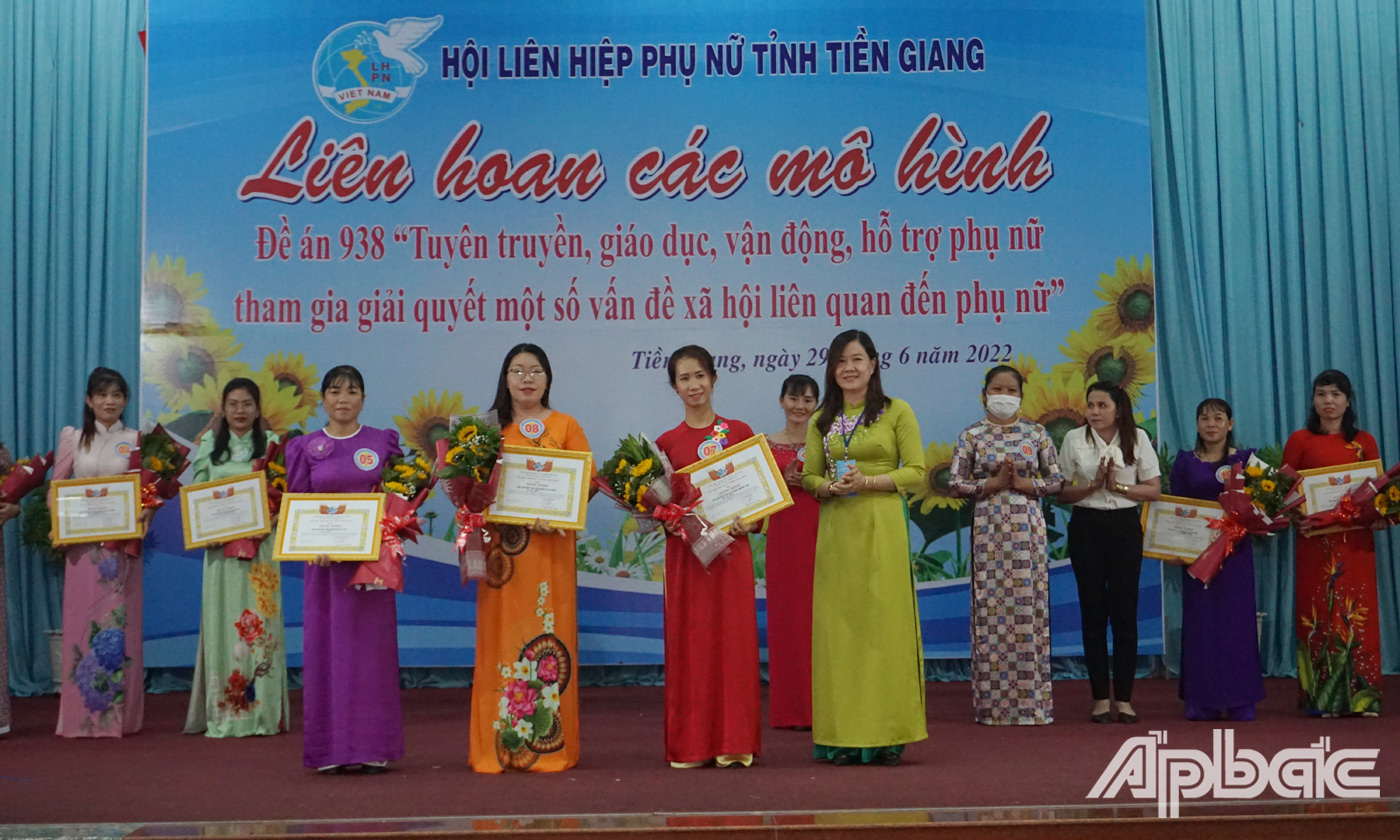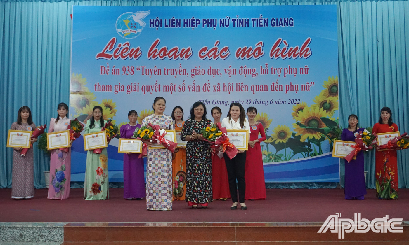 Chủ tịch Hội Liên hiệp Phụ nữ tỉnh Tiền Giang Nguyễn Thị Kim Phượng, Trưởng Ban Tổ chức Liên hoan các mô hình Đề án 938 cho biết, liên hoan là dịp để các cơ sở Hội, cán bộ Hội và thí sinh trên địa bàn tỉnh giao lưu, học hỏi, chia sẻ kinh nghiệm trong thực hiện các mô hình hay trong lĩnh vực phòng, chống bạo lực gia đình, giáo dục cha mẹ trong chăm sóc trẻ em, vệ sinh an toàn thực phẩm, kỹ năng tuyên truyền, giáo dục, vận động hội viên phụ nữ, nhân dân trong “Tuyên truyền, giáo dục, vận động, hỗ trợ phụ nữ tham gia giải quyết một số vấn đề xã hội liên quan đến phụ nữ”.