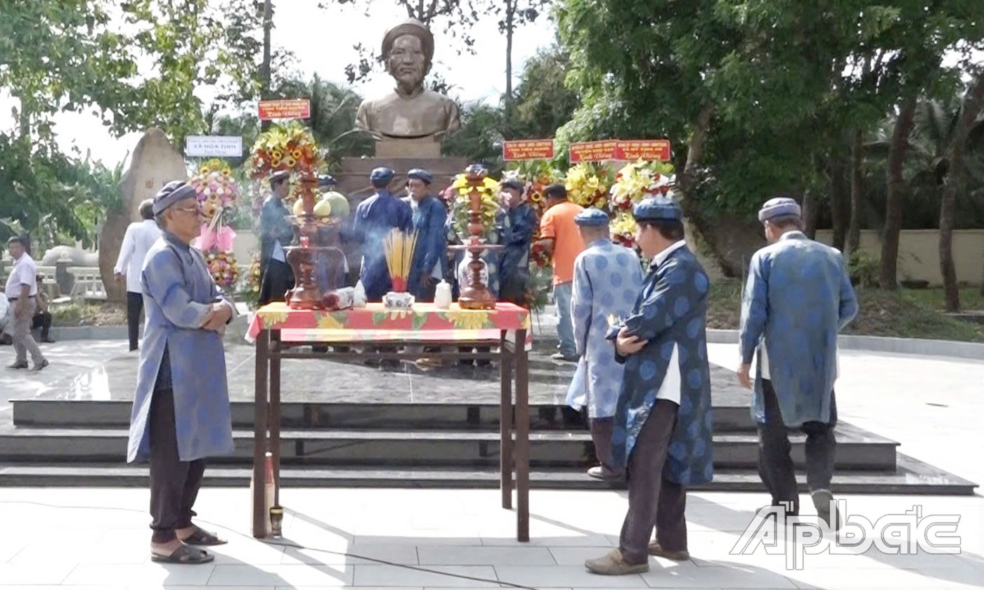 Tại Lễ an vị tượng Anh hùng dân tộc Thủ khoa Nguyễn Hữu Huân, các đồng chí lãnh đạo tỉnh, huyện đã thắp hương và dành một phút mặc niệm tưởng nhớ vị anh hùng của dân tộc.
