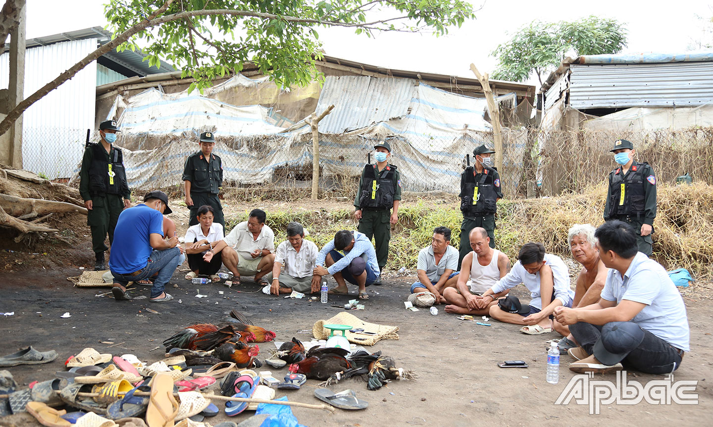 Được biết, tụ điểm đá gà trên nằm sát đường lộ lớn do một đối tượng có biệt danh Út Trọc tổ chức và Nguyễn Phan Phát Giàu (SN 1984, xã Phước Trung, huyện Gò Công Đông) làm trọng tài. Các đối tượng thường tụ tập tại quán cà phê đối diện, sau đó vào tụ điểm để tổ chức đá gà. Đối tượng Giàu khai nhận, tụ điểm đá gà này đã tồn tại gần 1 năm qua, mỗi ngày tổ chức từ 10 đến 12 trận đá gà.