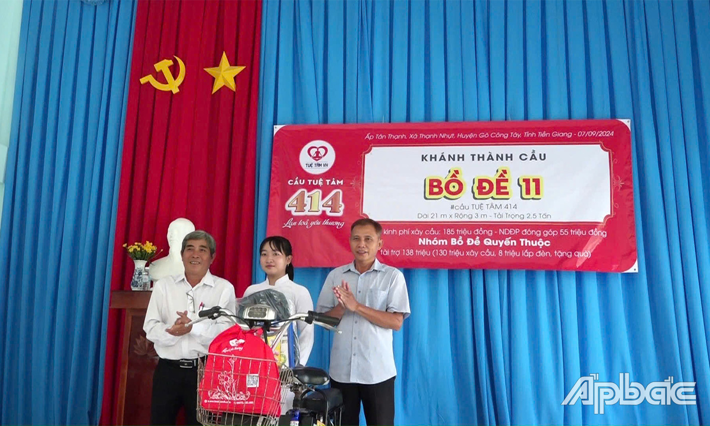 Tại Lễ khánh thành, Đảng ủy, UBND xã Thạnh Nhựt đã trao tặng Giấy khen của UBND huyện và trao thư cảm ơn của chính quyền địa phương tri ân sự quan tâm hỗ trợ kinh phí của Nhóm Từ thiện Tuệ Tâm VH và các nhà từ thiện đã kết nối, vận động, hỗ trợ kinh phí hoàn thành xây dựng cầu Bồ Đề 11 tại xã Thạnh Nhựt.