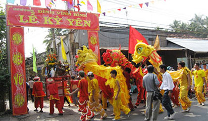 Hàng năm, cứ vào độ vầng trăng tháng cuối năm tròn dần là các làng quê ở huyện Gò Công Tây rộn ràng trong Lễ hội Kỳ yên. Trẻ em xúng xính trong bộ quần áo mới, người lớn y phục chỉnh tề, hồ hởi nhanh bước tề tựu trước đình làng trong ngày lễ hội. Đình Vĩnh Bình được công nhận di tích lịch sử - văn hóa, là nơi tổ chức lễ hội Kỳ yên lớn nhất tỉnh.