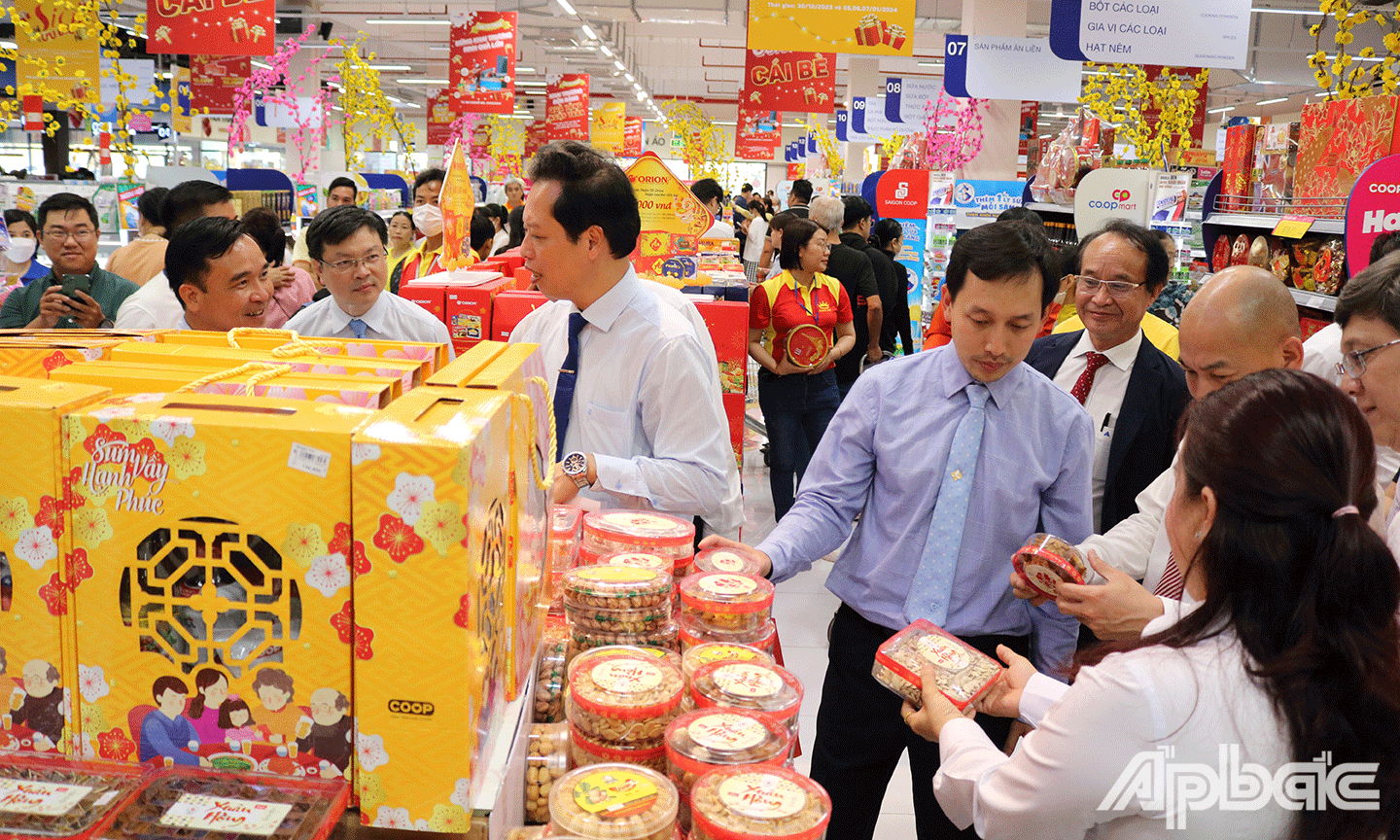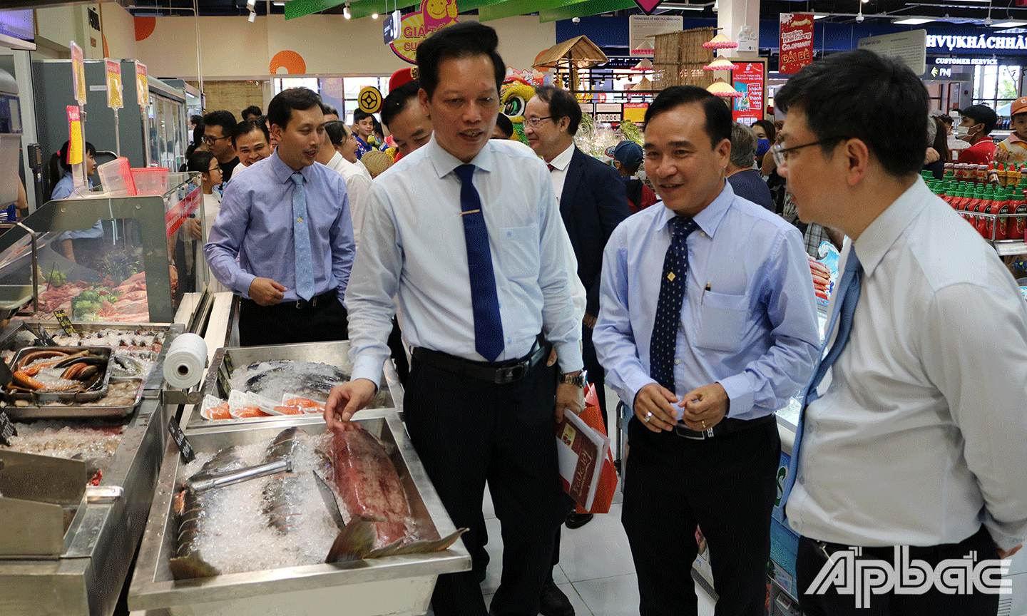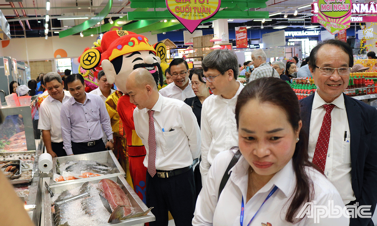 | Đại biểu tham quan TTTM SenseMarket Cái Bè và Siêu thị Co.opmart Cái Bè. |
