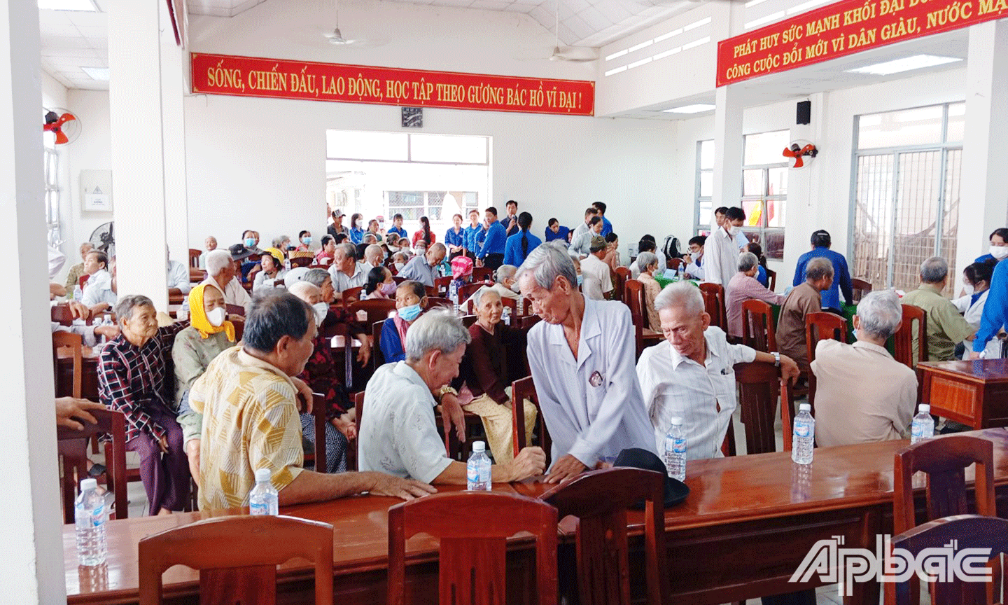 Đông đảo người dân xã Thạnh Lộc đến khám bệnh. |
