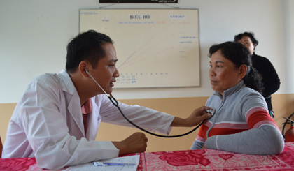 Bà con nghèo được các y, bác sĩ thăm khám tổng quát kết hợp siêu âm, điện tim, khám mắt… để tầm soát bệnh, đồng thời phát thuốc miễn phí và tặng gạo cho người dân. Những trường hợp bệnh nặng được giới thiệu đến các bệnh viện chuyên khoa để được điều trị kịp thời. Được biết tổng số kinh phí khám chữa bệnh 60 triệu đồng.