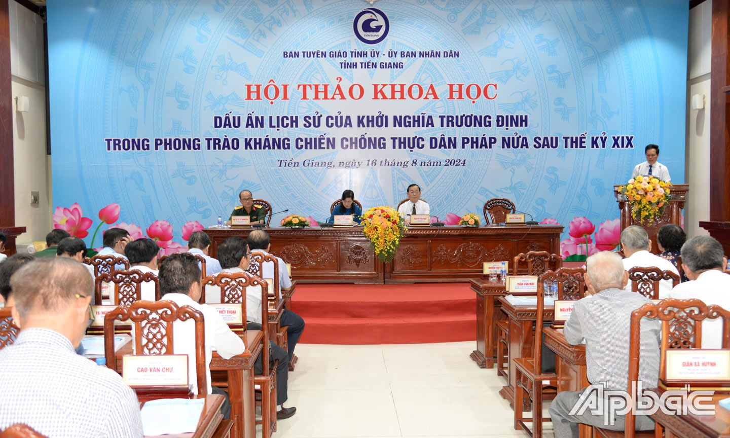 Hội thảo khoa học “Dấu ấn lịch sử của Khởi nghĩa Trương Định trong phong trào kháng chiến chống thực dân Pháp nửa sau thế kỷ XIX” (gọi tắt là Hội thảo) do Ban Tuyên giáo Tỉnh ủy Tiền Giang phối hợp với UBND tỉnh tổ chức ngày 16-8 là dịp để các đại biểu trao đổi, tiếp tục khẳng định tầm vóc, ý nghĩa lịch sử và những đóng góp to lớn của cuộc Khởi nghĩa Trương Định trong kháng chiến chống thực dân Pháp nửa sau thế kỷ XIX.