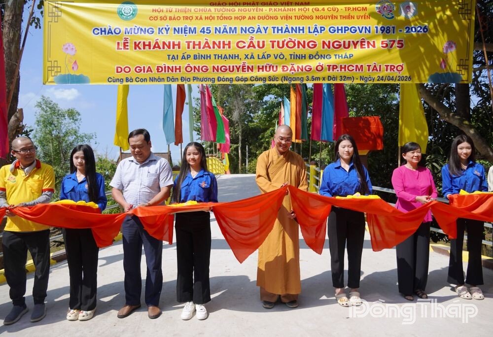 (ĐTO) Sáng 24-4, tại ấp Bình Thạnh, UBND xã Lấp Vò, tỉnh Đồng Tháp phối hợp với Hội từ thiện chùa Tường Nguyên (TP. Hồ Chí Minh) khánh thành cầu Tường Nguyên 575.