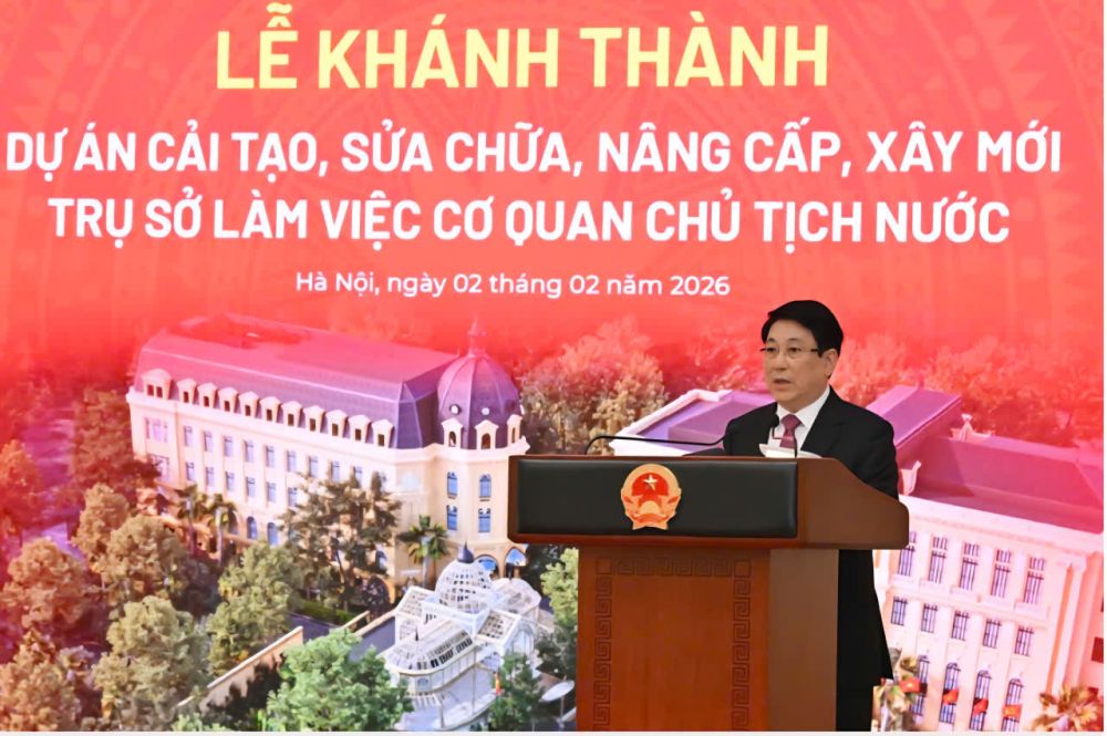 Chào mừng thành công Đại hội lần thứ XIV của Đảng và kỷ niệm 96 năm Ngày thành lập Đảng Cộng sản Việt Nam (3-2-1930 - 3-2-2026), sáng 2-2 tại Hà Nội, Tổng Bí thư Tô Lâm, Chủ tịch nước Lương Cường đã dự Lễ khánh thành dự án cải tạo, sửa chữa, nâng cấp, xây mới trụ sở làm việc Cơ quan Chủ tịch nước, tại số 2 Lê Thạch - Bắc Bộ phủ (Hà Nội).