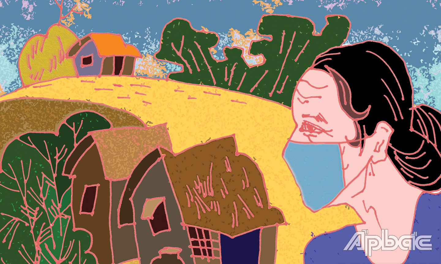 Tiếng ai đó kêu với vào làm bà Tư giật mình. Bà vội “Ơi!” rồi với tay lấy cái khẩu trang treo trên vách đeo vào, chân nhanh bước ra cổng rào.
