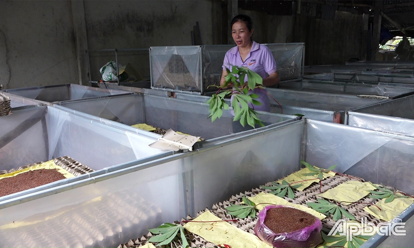 Không chỉ chú trọng phát triển kinh tế gia đình, mà chị Trang còn sẵn sàng chia sẻ, giúp đỡ, hỗ trợ về kỹ thuật, kinh nghiệm nuôi dế và tạo đầu ra cho các hộ dân địa phương nuôi dế, đem lại thu nhập ổn định cho các hộ từ 4 - 5 triệu đồng/tháng.
