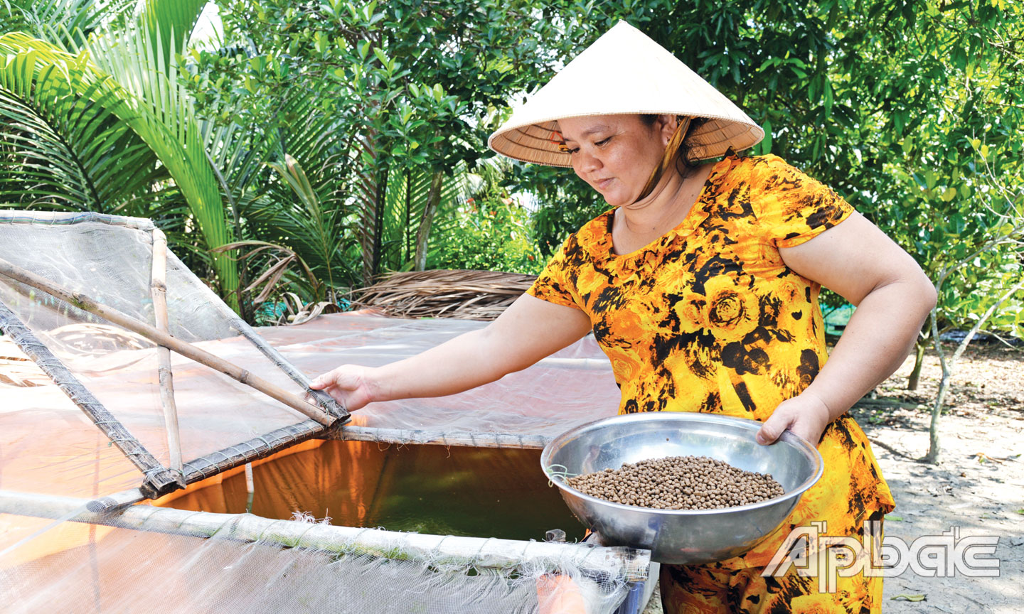 Chia sẻ về kinh nghiệm nuôi ếch, chị Thủy cho biết: “Ếch không chỉ dễ nuôi, mà có thể nuôi với số lượng nhiều, mật độ bình quân khoảng 100 con/m2. Ếch thịt nuôi khoảng từ 3 tháng đến 4 tháng là có thể xuất bán, với đầu ra và giá cả tương đối ổn định nên an tâm”. Bên cạnh tập trung phát triển kinh tế gia đình, chị Thủy còn rất nhiệt tình trong việc tư vấn, hướng dẫn kỹ thuật, cung cấp ếch giống cho những hộ có nhu cầu nuôi ếch trên địa bàn.
